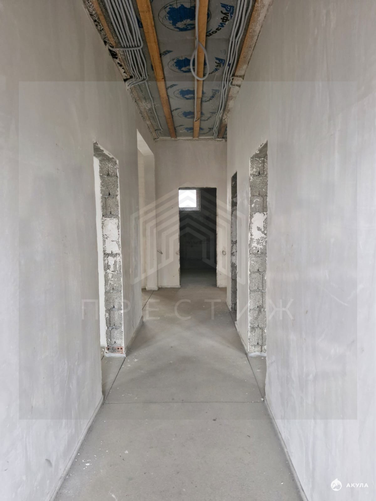 Выполнена предчистовая отделка: стены отшпаклеваны, стяжка, разводка электрики, водопровода и канализации, забор и ворота.