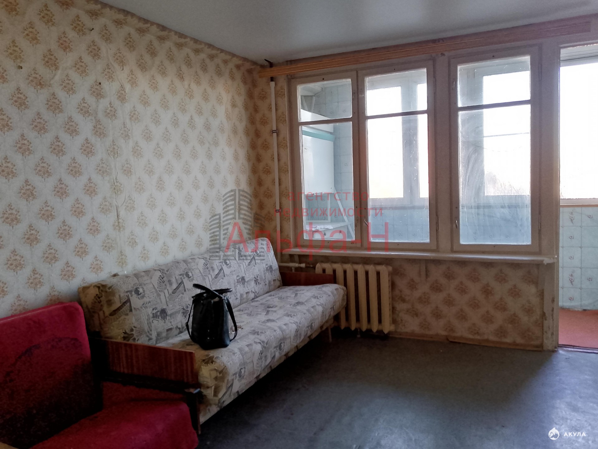 просторная комната с выходом на застекленную лоджию,