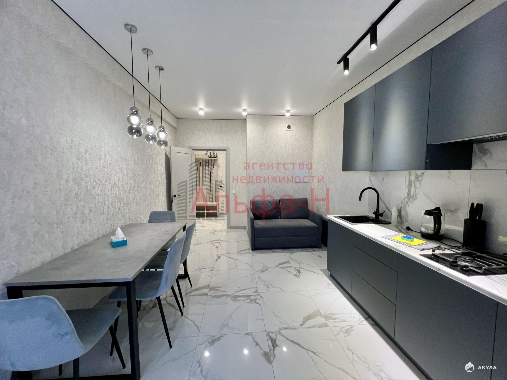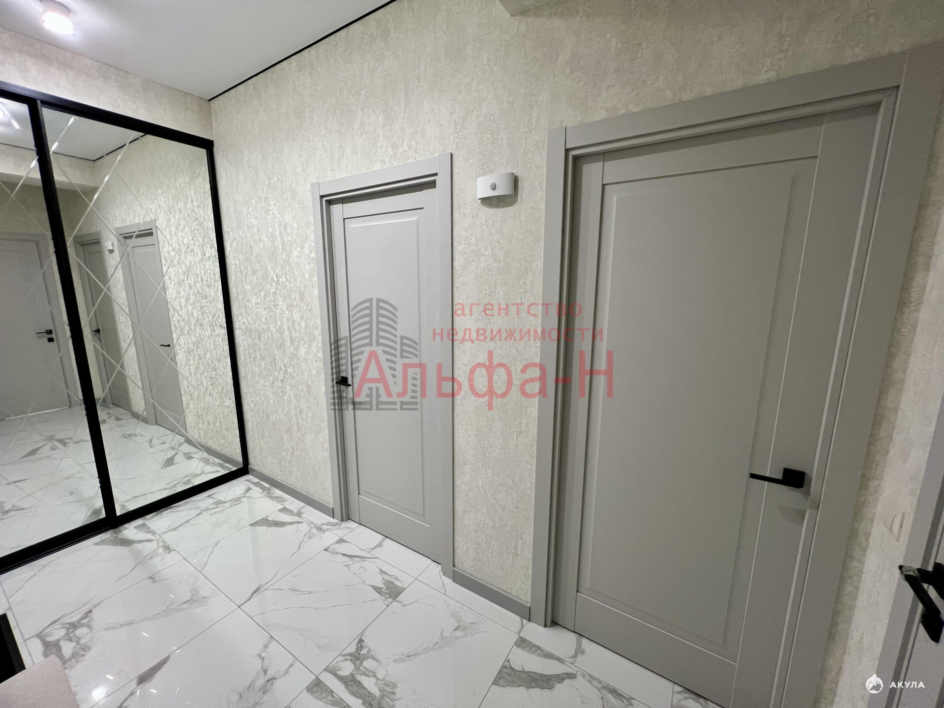 Продуманная планировка: коридор с системами хранения, просторная кухня, совмещенный санузел с душем и спальня.