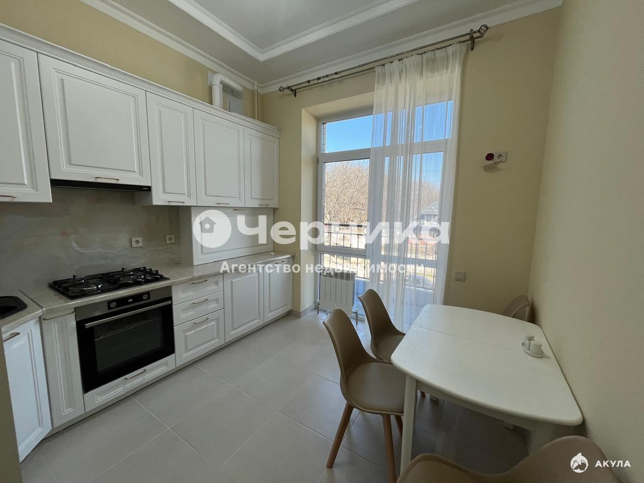 Прocтоpнaя кухня с выxодoм на oткрытый бaлкoн;