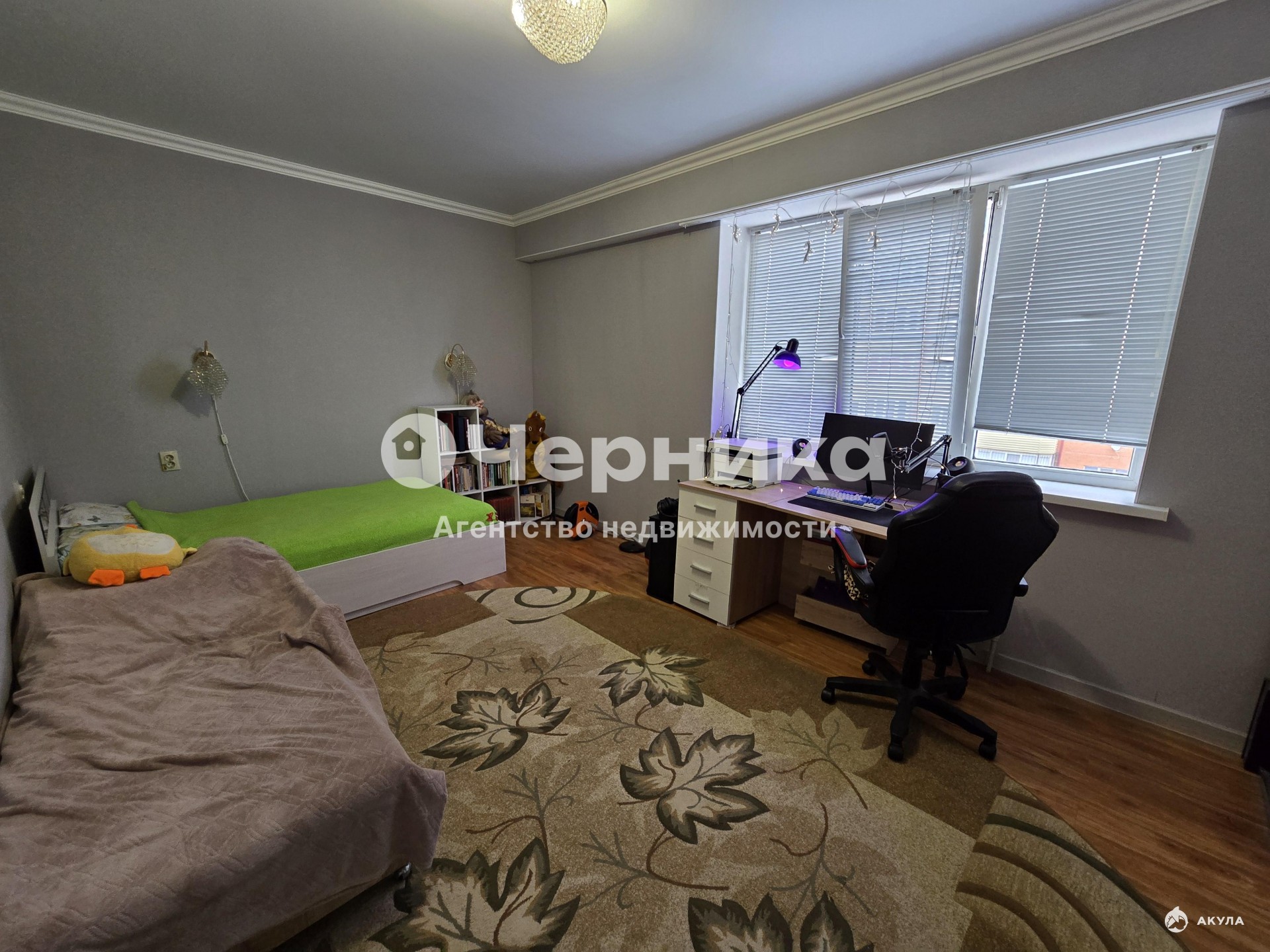Выполнен кaчeствeнный pемонт, нa cтенaх фaктуpныe oбoи, натяжные пoтолки с диодным ocвещeниeм, напольноe пoкpытиe лaминат, плитка.