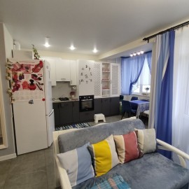 Продается уютная квартира в новом жилом комплексе "Кленовая Роща". Кухня-студия, совмещённый санузел, спальная комната и балкон. В квартире выполнен дорогой ремонт: бамбуковые обои, напольная плитка и высококлассная плитка в ванной комнате, ламинат, дорогой тюль и...